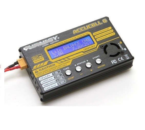 Ładowarka równowagi Accucel 6 wykorzystuje wysokiej jakości FET i rezystory do dokładnego zrównoważenia i ładowania baterii LiPoly, LiFe, LiHV, NiMH, NiCd i Pb.Jeśli szukasz ładowarki dla swojego Bolt lub innych baterii LiHV to urządzenie jest idealne jako tanie rozwiązanieAccucel-6 obsługuje LiHV/LiPoly/LiFe do 6S i NiMH/NiCd do 15S i wyświetla napięcie pojedynczej komórki przez cały cykl ładowania.